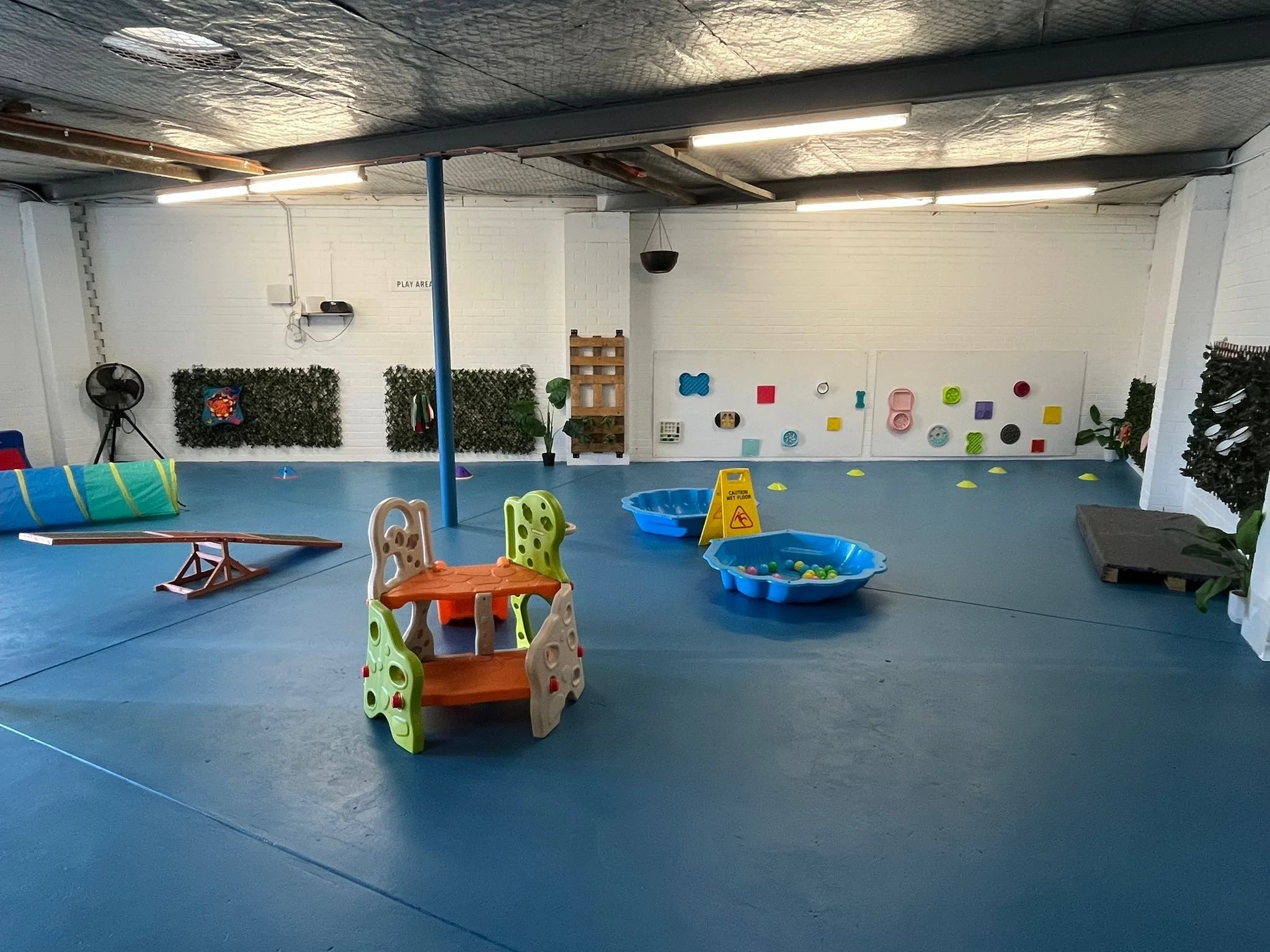 Our large indoor warehouse means that we can have fun all day - rain or shine, and our separate play areas allow us to include dogs of all shapes and sizes!